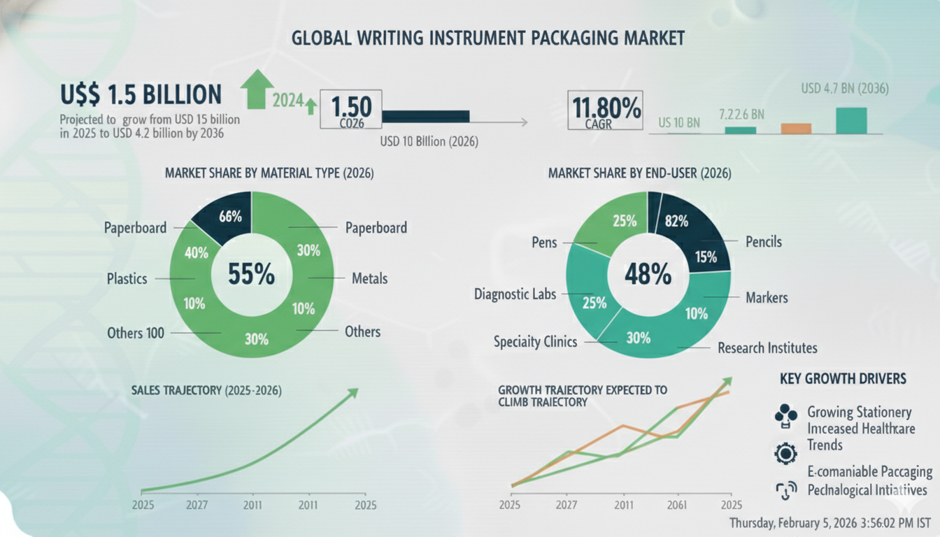 MD, UNITED STATES, February 5, 2026 /EINPresswire.com/ -- The global writing instrument packaging market is poised for steady expansion over the next decade, driven by rising demand for sustainable materials, premium product presentation, and the continued growth of education, corporate, and gifting segments worldwide. As pens, pencils, markers, and highlighters remain essential tools across academic, office, and personal use environments, packaging solutions are evolving to meet changing consumer expectations and regulatory requirements.